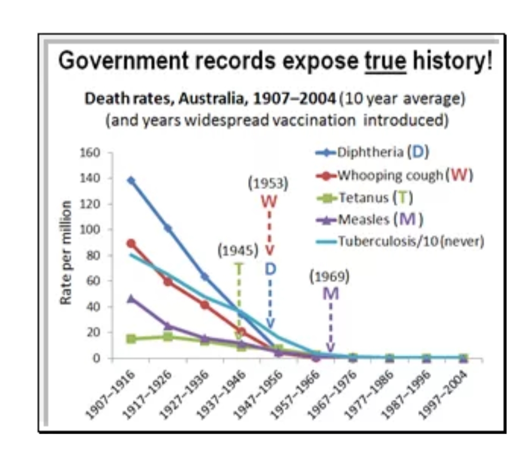 Here is the evidence that proves that vaccines were not the most important factor in the control of infectious diseases. In addition, they are responsible for harming (and killing) millions of people each year. The significant increase in chronic illness and neurological damage in children is testimony to this fact – a correlation that the Australian government has ignored and has actively de-funded instead of collecting the evidence to prove or dis-prove this plausible causal link.